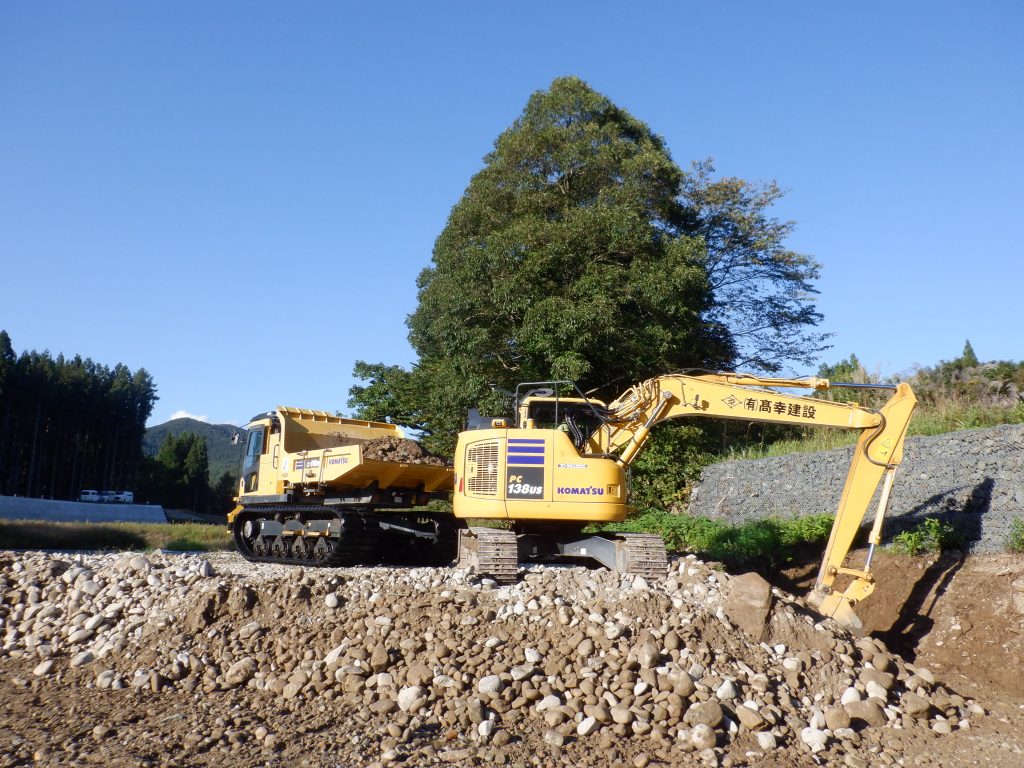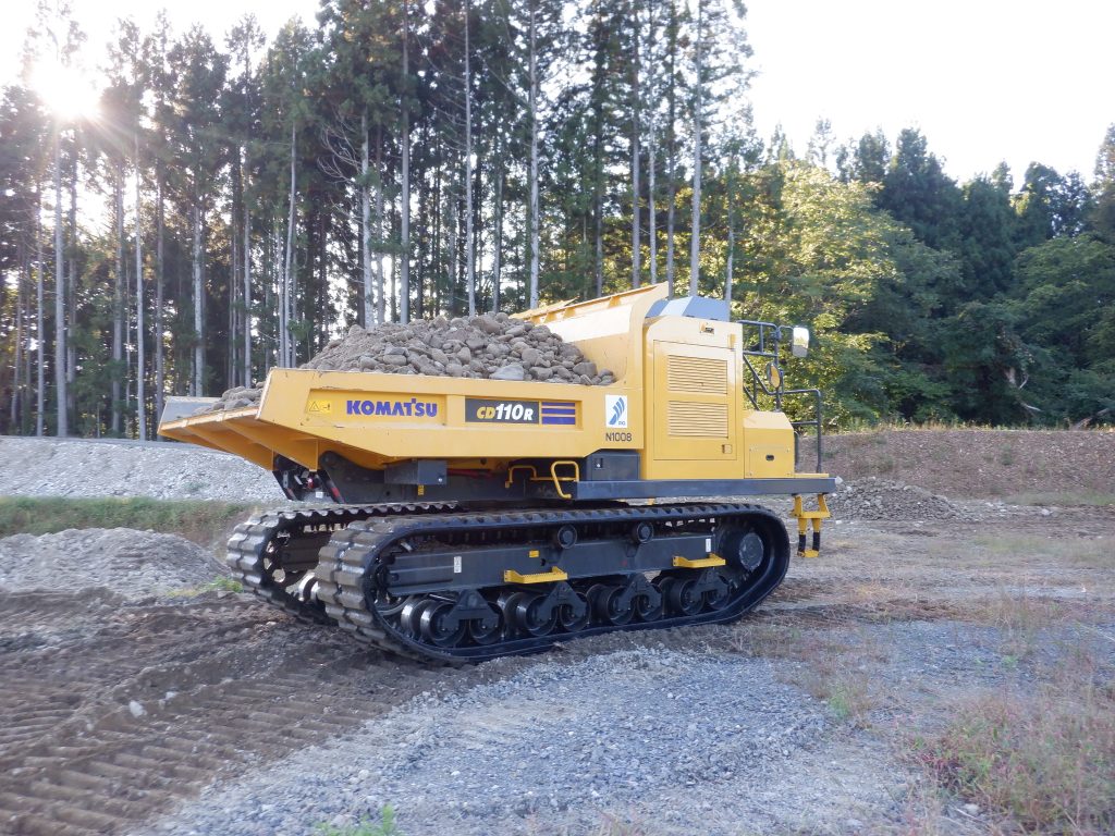 現場では、バックホウの他に大型のキャリアダンプが活躍しています。